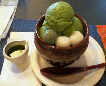 念願だった中村藤吉!本場の宇治に本店があります。白玉団子3個に抹茶アイス。中は抹茶ゼリーが入ってて抹茶ソース(画面左)をかけていただきます。意外と量が多く、お値段もリーズナブル。和の甘味処で、お店の雰囲気も凄く良い!!