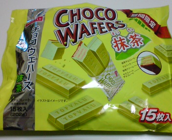 抹茶の葉?が入ってます。安いしキットカット風でいい感じかなと思います。
